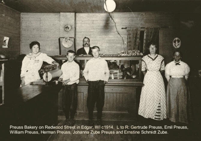 Left to Right: Gertrude Preuss, Emil Preuss, William Preuss, Herman Preuss, Johana (Zube) Preuss and Ernstine (Schmidt) Zube.