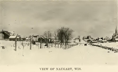 The first settlers have all gone now to their long rest, and the second generation is getting well along in years, but as a rule the land first settled upon by the pioneers is still occupied by their sons or grandsons. The buildings are exceptionally fine, good houses and barns; houses with a heating apparatus and water supply are not a rarity; the roads are in good condition all the year around, and the land in a state of high cultivation. The number of cheese factories and creameries has caused the farmers to improve their stock greatly. The town consists now of township 30, range 6 east, and is one of the smallest in the county, because the correction line on the west makes , it-a. little less than thirty-six full congressional sections. But the town is one of' the richest in the county. It is doubtful whether a single eighty acres is owned by anyone not an actual settler or occupant. There are one creamery and five cheese factories in the town, two general stores with a good stock of merchandise, one conducted at Naugart by Albert Fehlhaber, and one near the southwest corner of the town by William Beilke, both sons of pioneers.* There is located in this town a large saw mill owned by the widow of Henry Sellin, which is well stocked with logs by the fanners from Berlin and Hamburg. It has been in operation for thirty years, sawing millions of feet of pine, and there is timber enough in the towns of Berlin and Hamburg to supply the mill for twenty-five years more.