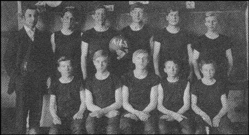 1916 basketball team. Boys include Ralph Strebe,