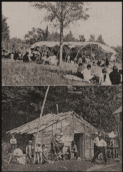| Above: The War Bundle Sacrifice | Below: Bark House of Skunk Hill Indians |