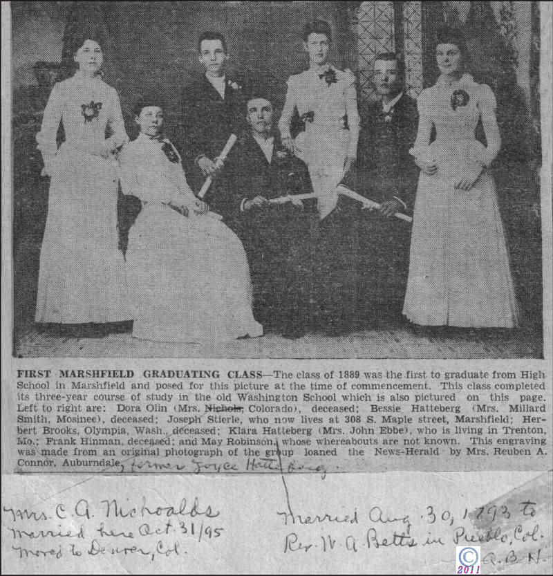| FIRST MARSHFIELD GRADUATING CLASS--The class of 1889 was the