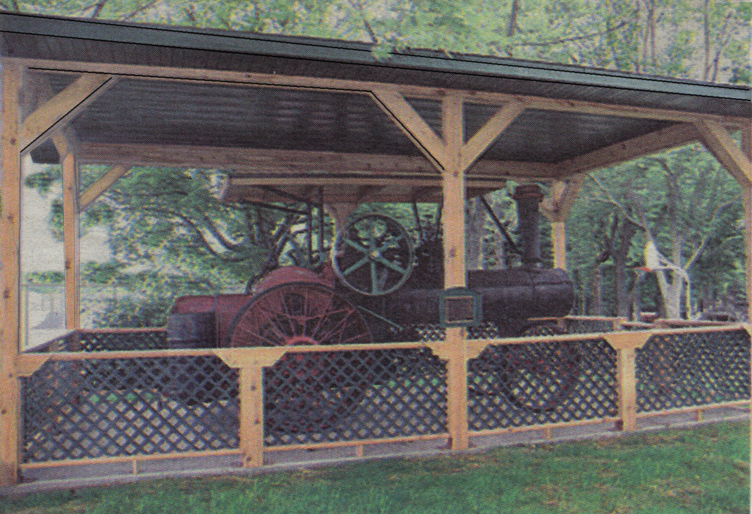 A 1919 Case steam engine has been turning more than a few heads lately in its new location just inside the main gate to Schuster Park in Neillsville. Once used for threshing grain and powering a saw mill, it reflects the community’s rich logging and farming traditions. The steam engine was donated to the city of Neillsville by the Martin “Max” Feuerstein family in 2002, at first being exhibited out in the open on the grounds of Central Wisconsin Broadcasting. The realization was soon reached that more shade and shelter was needed to preserve the engine’s painted metal surfaces. The decision was then made to move it to a more protected area in a city park, a surrounding deemed ultimately appropriate given that Feuerstein lived in the city and served for a time as a city alderman. The Listeman Foundation provided the $13,000 for the cost of the roofed shelter structure, built with materials from Sav-Rite Building Center. The cement slab was poured by Brorson Construction and the carpentry work was done by Erickson Construction.