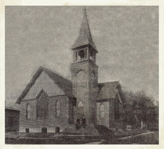 The church, which was founded in 1858, currently serves 101 members. The current church building was constructed in 1895 at the corner of Fourth and Court Streets; a Fellowship Hall was added to the building in 1970. The church’s first building was constructed near the same location in 1869.