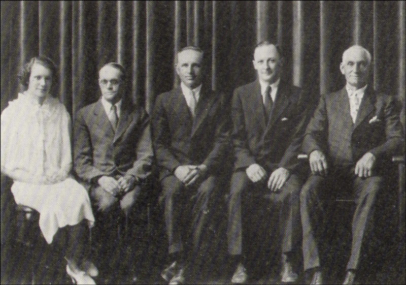 Sitting: George May, Paul Blum, Pastor William A. Bauman, William Naedler, Albert Degener.