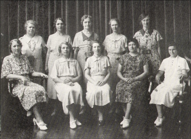 Second Row: Mrs. Paul Bartell, Mrs. Albert Dahnert, Mrs. Henry Naedler, Mrs. Robert Bruss, Mrs. Calvin Mills