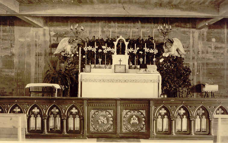 The temporary Altar set up in the church basement in 1924, after the school sagged. (Click the thumbnail above to enlarge it) |