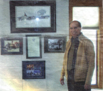 Pastor James Mohr poses next to pictures of the UCC church and the two churches that merged to form the Neillsville UCC in 1959.