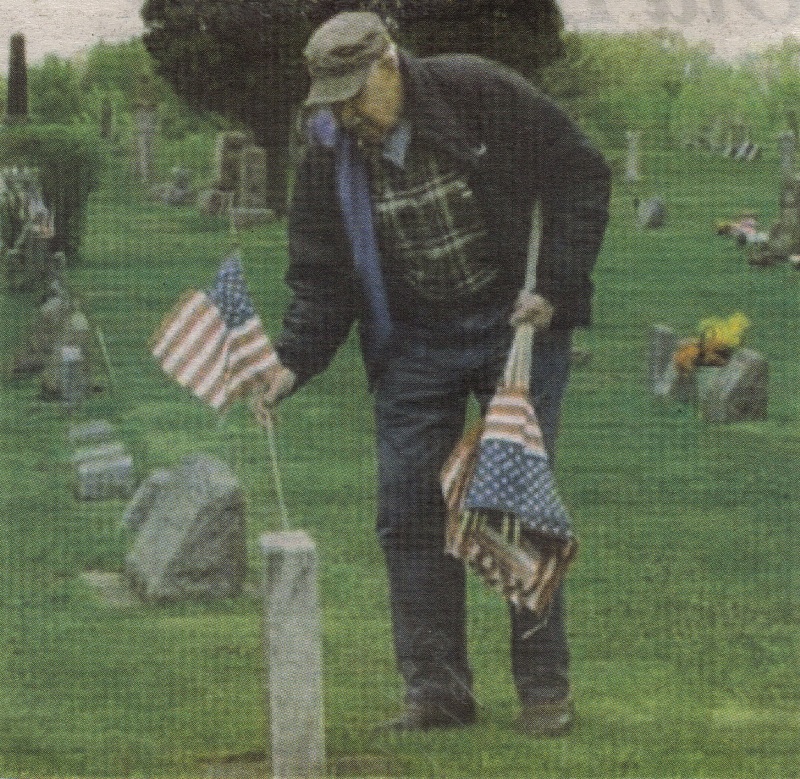 Neillsville American Legion Post 73 volunteer Bob Shaw (above) places a U. S. flag at a Neillsville City Cemetery grave Wednesday, May 25, to observe Memorial Day. Shaw and other Legion volunteers (below) placed flags on permanent grave markers in Neillsville cemeteries to prepare for this year’s Memorial Day observance. Over 600 flags were placed on the graves of both men and women to recognize their service to the country in past wars and military actions. The Clark County Veterans Service Office provided the flags, by state statute, to cities and towns for this purpose. This volunteer effort is an annual activity. The flags usually remain in place through the July 4 celebration. (Contributed photos)