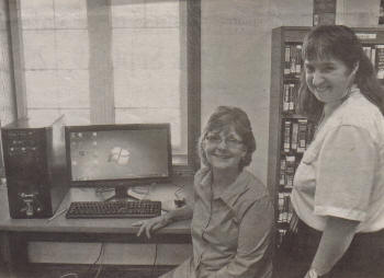 Becky Barrette (left) a member of the Neillsville Area Public Library Foundation, and Jo Ann Gustavson, director of the library, pose with one of the Library’s new computers. (Contributed photo)