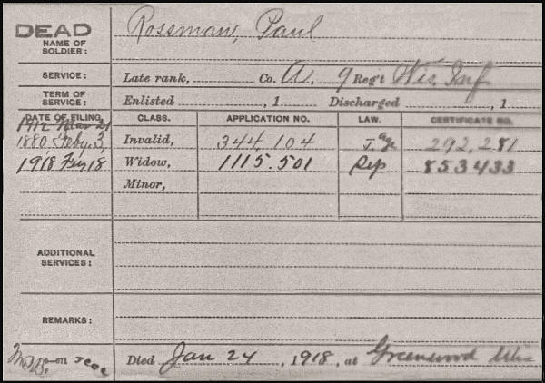 Paul died January 24, 1918 in Greenwood, Wis., at 75 years of age. Buried in Greenwood Cemetery.