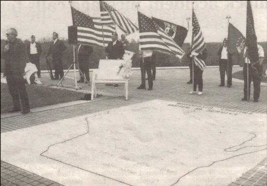 Eight more Wisconsin counties were represented during the latest dedication ceremony on the Wisconsin counties United In Service Tribute at The Highground Veterans Memorial Park Saturday afternoon. Of the state's 72 counties, 54 now have engraved stones on the tribute located at the point of the elevated Highground plaza. During Saturday's ceremony, County Veteran Service Officers (CVSOs) and other representatives from each of the counties spoke of the significance of the stones showing the county's recognition and support for their veterans. Larry Weber (inset), a member of Loomis-Martin American Legion Post 188 of Walworth County may well have been speaking for many others from the southeastern Wisconsin county who gave of time and effort in the project, but were not able to be in attendance, "I'm proud to be here today," he said.