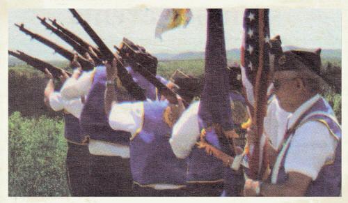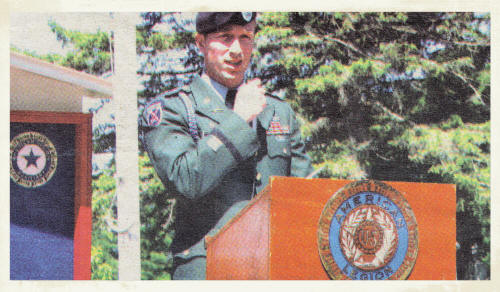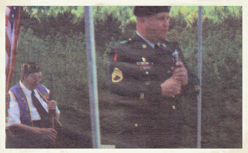 Neillsville?s Haugen-Richmond Color Guard participates in a 21-gun salute at The Highground?s Memorial Day service held Monday, May 26, 2008. Iraqi War veteran David Barth (below) speaks during the ceremony. (Photo by Cheryl Anderegg/Clark County Press)