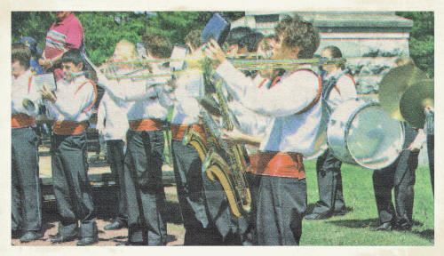 Iraqi War veteran Captain Clint Langreck speaks at a Memorial Day service held Monday, May 26, 2008, at the Neillsville City Cemetery, reminding the large number of attendees veterans died to preserve the country?s many freedoms. Neillsville High School band members (below) play during the service. The Memorial Day service began at the Hewett Street Bridge and concluded at the cemetery. (Photo by Peter Spicer/Clark County Press)