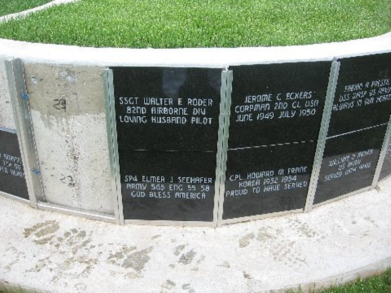 Saturday, June 12, 2010, friends and relatives of 26 Korean War Veterans gathered at Highground War Memorial near Neillsville, to mount memorial stones honoring those 26 vets. Among the names so honored was Walter E. Roder, son of John E. and Nell (Bryan) Roder, all natives of the Neillsville/Clark County area. Walter (Wally) enlisted in the 82nd Airborne Division at age 17, trained at Camp Campbell, Kentucky & Ft. Bragg. He served for five years where he saw heavy action; he was promoted to Staff Sgt. and became a squad leader. After the service, he continued working in the airplane industry; he built and flew his own planes. Two of his sisters, two cousins & a former sister in law in addition to members of the Bryan family represented his widow, Marimae, at the ceremony & in mounting the stone into the Korean Memorial wall.