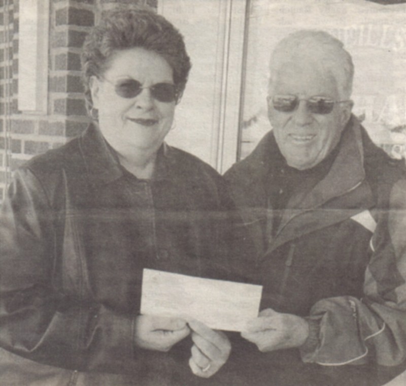 Neillsville Mayor Diane Murphy (l) on behalf of the city of Neillsville, presents Highground Volunteer General Manager Kirk Rodman with a $1,500 check. The funds will used to help complete a Fountain of Tears project.
