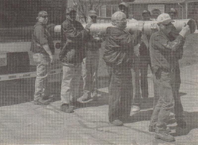 Rodman made some calls to his “go-to” contacts. Millis Transfer of Black River Falls arranged to transport the flagpole from Princeton to Neillsville. John Jachtober of Jachtober Roofing in Princeton donated the use of his crane to remove the pole and get it to the ground for loading.