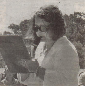 Volunteer Master of Ceremonies Cindy Boon helps with The Highground’s Legacy Stone Placement Ceremony Saturday, Aug. 28, 2010. A total of 25 stones were placed. (Contributed photo)