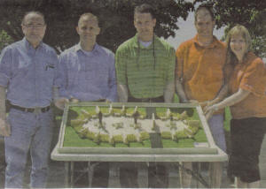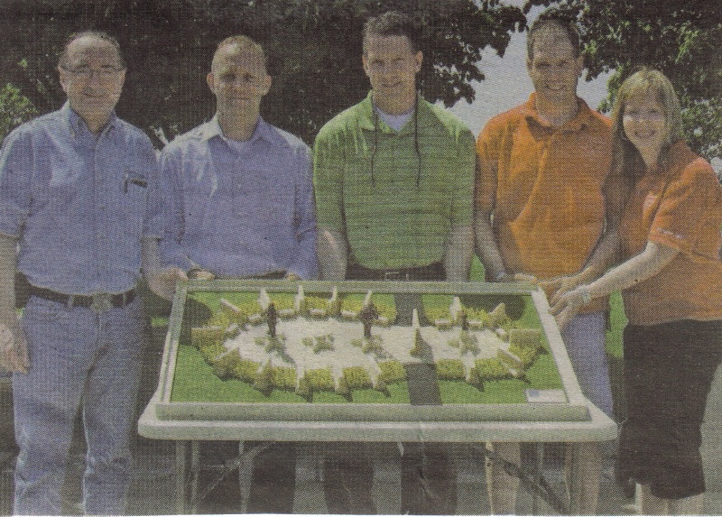 The Persian Gulf Tribute Committee is currently raising funds for a Persian Gulf Tribute at The Highground. Those posing with the Bootprint design for the tribute include (L-R) Highground Board of Directors President Greg Foye of Wausau; Sergeant First Class David Barth, Neillsville, the Wisconsin National Guard Army and Persian Gulf Tribute Committee Chairman; Bootprint designer Steve Jamroz of Blue Design Group, Hortonville; Staff Sergeant Brandon Hensiak, Neillsville, Wisconsin National Guard Army and Persian Gulf Tribute Committee member; and Amanda Hensiak, Neillsville, Persian Gulf Tribute Committee Secretary. (Contributed Photo)