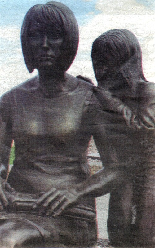 The Highground Fountain of Tears Statuary, including the GI (above) and the fallen soldier’s wife and child (below), will be dedicated during a Memorial Day celebration held Monday, May 25, 2009, at 1 p.m. (Contributed photos)