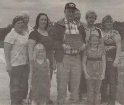 Highground volunteer and military veteran Earl Dorow (holding stone) of Phillips, poses with family and displays a Korean Stone, which friends anonymously recognized him with. As a bus driver for the Phillips School District, Dorow brought many students to The Highground’s Diversity Days held each September. (Contributed Photo)