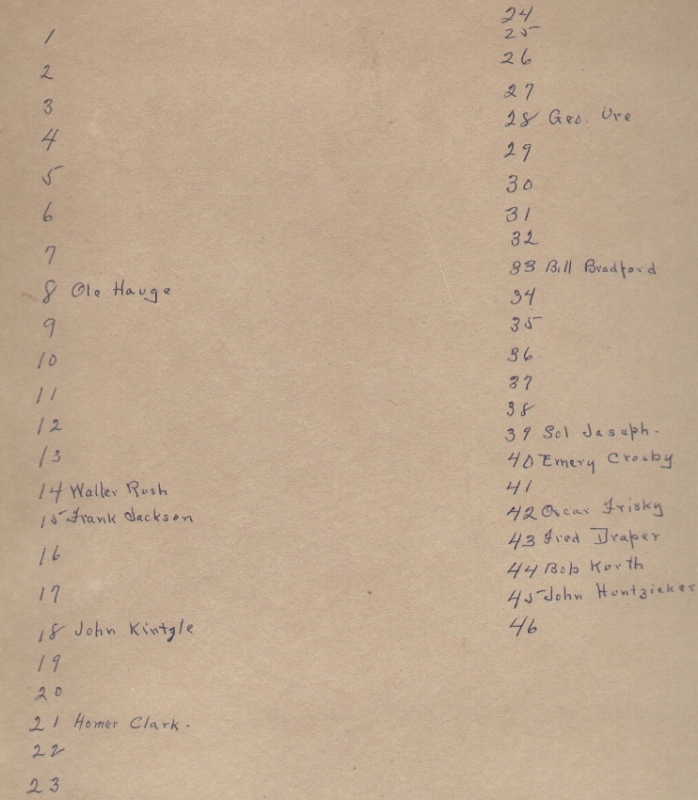| 8) Ole Hauge | 20) | 32) | 44) Bob Korth |