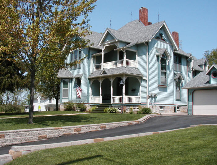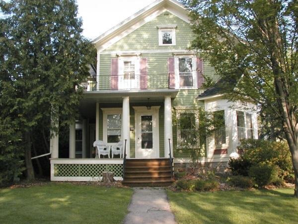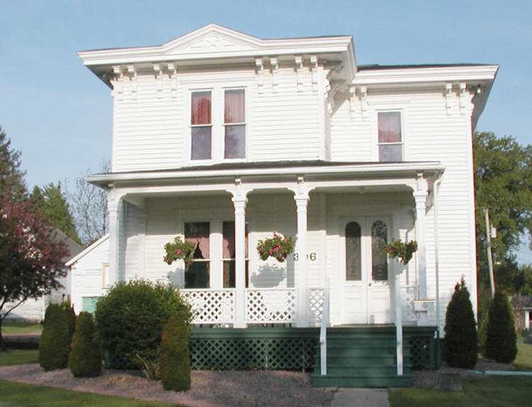 18. The Hoesly house-411 State St. Located at the corner of State and 5th Streets this home is one of Trogner’s carpentry masterpieces. This house was built in 1891, and originally owned by Decatur Dickinson who was a stockholder in the Neillsville Bank and held timberland in Western states. In 1912, Marcus, Sr. and Katherine Hoesly purchased the house for their home. A daughter Ann owned it later. Ann’s brother, Jacob and his wife, Harriet live in a home to the east of that house. Jacob and Harriet’s son, Allen now resides in his grandfather’s house. In 100 years, only two family names have been its owners. This house was built in 1891 by George W. Trogner for Decatur Dickenson. Mr. Dickenson was a veteran of the Civil War and came to Neillsville about 1865. Mr. Dickenson was regarded as “The Dean of Merchants.” He had a general store, was a stockholder in the Neillsville Bank, and held timberland in western states. In 1912, Marcus Sr. and Katherine Hoesly purchased the home. In later years, their two daughters, Ann and Amelia, lived there. Allan Hoesly, grandson of Marcus Hoesly, owns the home now. If you look to the next home to the east on 6th Street you will see what the former carriage house of this home is. It was moved there and became the home of Allan’s parents Jake and Harriet Hoesly. Until Allan added his new garage a few years ago, none of the original buildings had been destroyed. Where the garage now sits was the wood shed. Many of the homes from this era had the main house, a carriage house and a wood shed. One more interesting feature is that this home has an identical floor plan to the brick Lloyd House which you will see later in the tour. Additional Sources: #1, #2, B. Harder Sketch. |