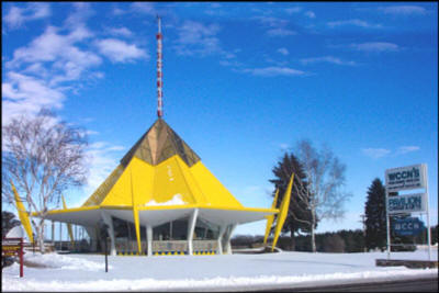 #3 Wisconsin Pavilion, 1201 Division Street This building was originally built and used as the "Wisconsin Pavilion" for the 1964 New York World's Fair. Howie Sturtz describes his aquisition of this building in his book "Thanks for the Memories". In 1965 Howie had heard a Wisconsin News Story, dateline Boscobel, Wisconsin, which announced that the Wisconsin Pavilion was for sale. A Boscobel blacksmith and resident Ivan Wilcox had purchased the building at the World's Fair site, planning to begin dismantling it the day after the closing of the fair. Unfortunately, looters had already begun this project when Wilcox arrived. He was able to stop them and began his own dismantling project. A few weeks later the building, now in pieces, was loaded onto semi trucks for it's long journey to Boscobel, Wisconsin where it was placed on the ground and left due to a lack of funding for reconstruction. Wilcox made two stipulations as to the sale: first, the building had to remain in Wisconsin, and secondly, he wanted to be the contractor who would reconstruct it on the new owner's property. Howie and Wayne Grap whom Howie had taken in as a part owner of WCCN in 1959, accompanied by Wayne Trimberger, a local Attorney, traveled to Boscobel. By the end of the day Howie, aided by Grap and Trimberger had outbid all others and purchased the building for $41,000.00. Once again, the building was loaded on semi trucks, this time making a trip from Boscobel to Neillsville where it was placed in storage for the winter. In summer of 1966 after obtaining financing, reconstruction began at it's present location. A year and $160,000.00 later, the building was completed by Tesmer Construction, Super Sky Products of Milwaukee, and local corpenters, plumbers, electricians all under the direction of Architect John Steinman of Monticello, Wisconsin, the original designer. The grand opening was held July 13-16th. 1967 and attended by Governor Warren Knowles, Senator William Proxmire, Congressman Mel Laird, Assemblyman William Kavanaugh and many more, including Neillsville's own State Supreme Court Justice, Bruce Beilfus. In the 9 weeks after the pavilion was re-opened in Neillsville it was visited by approximately 15,000 people. In 1976, Howie sold his 90% ownership in both WCCN and the pavilion to Wayne Grap. WCCN and the pavilion were eventually sold to Kevin and Peggy Grap, Son and Daughter-in-law of Wayne Grap. |