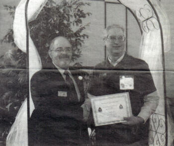 FFA Alumni member Rec. Roehl (right) of Neillsville accepts a Wisconsin Association Alumni Outstanding Affiliate certificate from FFA Alumni State President Aken Harter during the 2010 Wisconsin Association Alumni Convention held in Manitowoc Feb. 12 ? 14. (Contributed photo)
