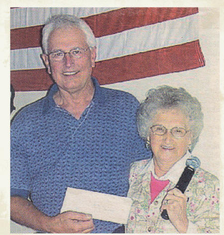 Jerry Opelt, Master of Ceremonies for the afternoon, invited members to make comments and relate jokes for the entertainment of the group. After the meal, a show of hands indicated that another reunion would be welcome in two years. A donation of $600 to the American Legion Post 73 from the classmates was presented by Lorraine Shaw, class member, to Clem Schultz, representing the Legion. Another contribution of $283 was given by the class of 1944. Some classmates continued the reunion by gathering Saturday morning at the Olympic Restaurant for breakfast and more comradery.