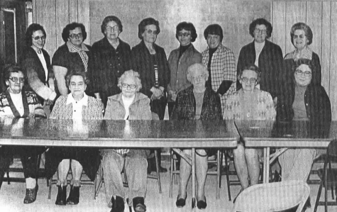 LADIES AID Row 1: Mrs. Leota Schwantes, Mrs. Olaf (Mildred) Manthe, Mrs. Alvina Seefeld, Mrs. Augusta Justman, Mrs. Emil (Norman) Luepke, Mrs. Paul (Francis) Seefeld, (Vice-president) Row 2: Mrs. Dave (Barb) Ault, Mrs. Robert (Esther) Stroetz, Mrs. Gerhardt (Isabelle) Klein, (treasurer), Mrs. Eugene (Arlene) Marten, Mrs. Virgil (Gloria) Seefeld, (secretary), Mrs. John (Pat) Miller Jr., (President), Mrs. Bernard (Doris) Krause, Mrs. Maynard (Elda) Neuman Not pictured: Mrs. Ray Klein, Mrs. Lester Bruesewitz, Mrs. Gerald Schwantes, Mrs. Wilmer Hopfensperger, Mrs. Clarence Dean, Mrs. Gerald Neumann, Mrs. Wilbur Mellenthin, Mrs. Ron Seefeldt, Mrs. Ron Bruesewitz, Mrs. William Marten, Mrs. George Oelrich, Mrs. Dorothy Neumann, Mrs. Elsie Mellenthin, Mrs. Bertha Fischer