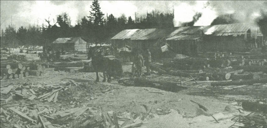 Established shortly after the turn of the century, in 1904, the Riplinger Saw Mill was kept busy.  Situated in an area surrounded by excellent virgin hardwood timber, such as white and red oak, linden, maple, rock elm, birch, ash and some butternut, it was an ideal location for the business.  The mill was owned by Charles Duvall, and was located near Riplinger.  It was on the south side of Riplinger road where Cty. Hwy. Q dead ends.  All that remains on the site is part of the foundation.  (Photo courtesy of Al Gurtner, local Unity Historian)