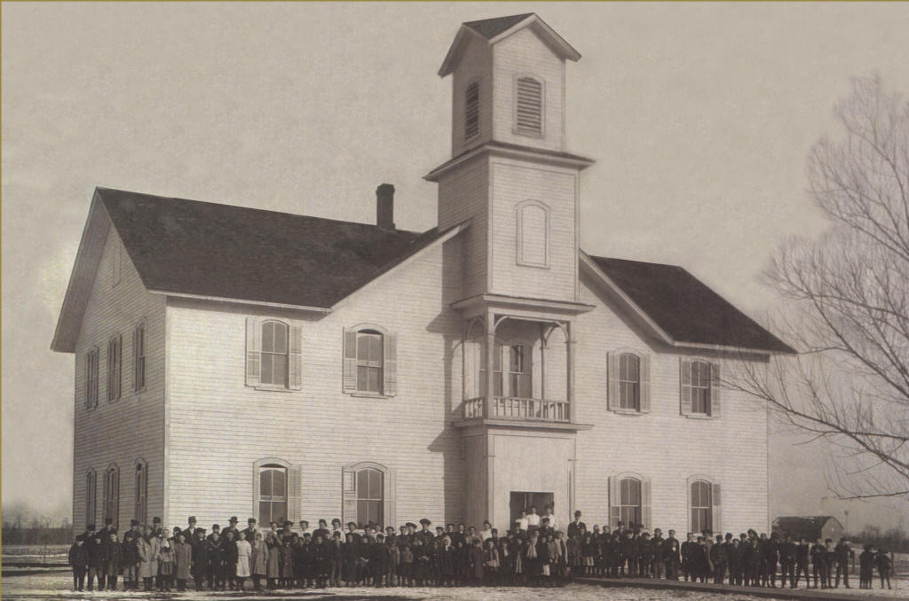 In spite of the good times and happy hours of this cheerful group, disaster would darken their path. One afternoon in the fall of 1890, children apparently amused themselves by playing with matches in the woodshed of the school building. Usually the outcome of such a game proves fatal as was the case in this incident. A fire was kindled in the wood shed and gained ground too rapidly for the children to control and as a result soon reached the school building. Before sufficient help could be secured, the school had completely burned. From then until time would permit the construction of a new building, classes were held in the drugstore, which was located a short distance south of our present post office. After a few months of combined efforts of the settlers a new and larger school building was finished and ready for occupancy. This was located in about the same place as the former. Several improvements had been made over the older building, and a new and more efficient set of textbooks had been installed. Source: Unity Centennial Booklet 1872 - 1972.