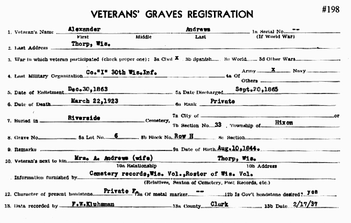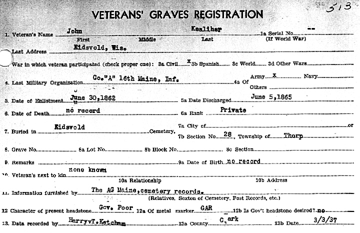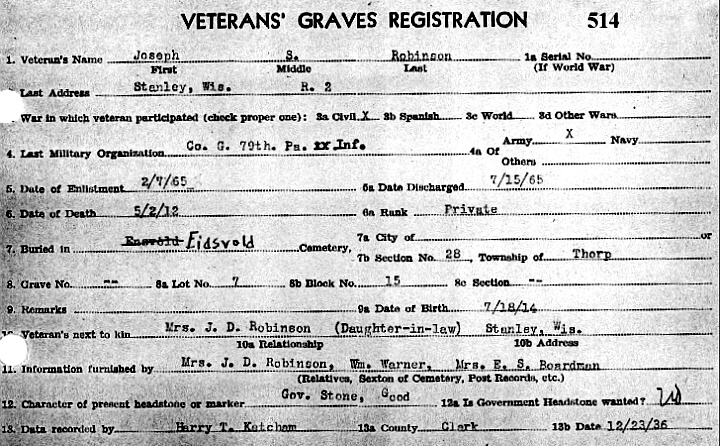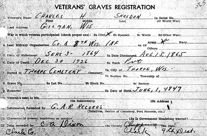 Sources: GAR Records, Veteran Grave Records, News Clips, Census Records, Family Records