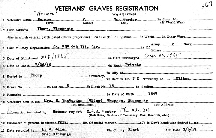 *VanGorder, Herman/Harmon F.--VGR#569 |