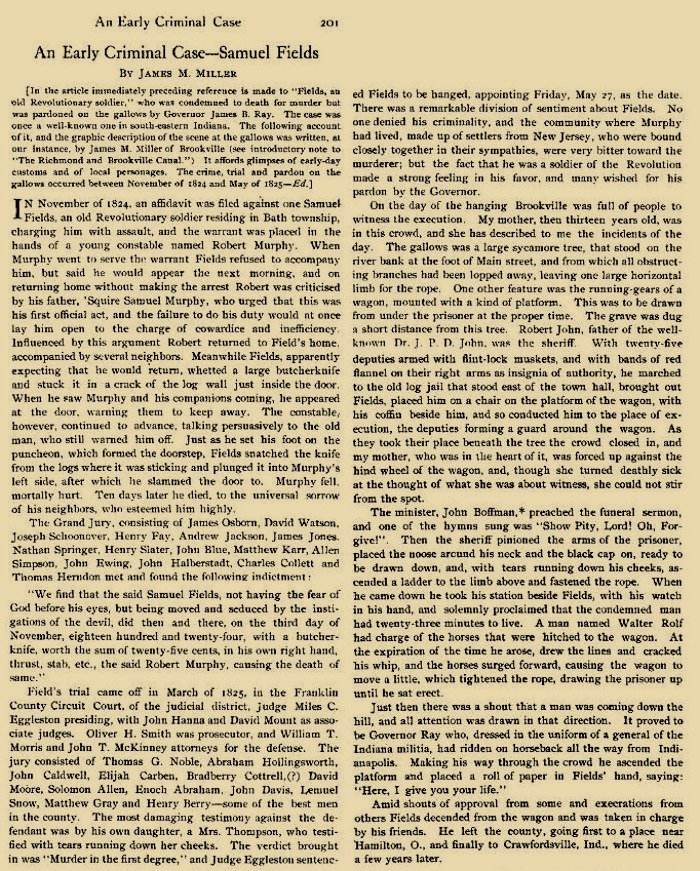 ALLEY, SAMUEL Decatur Co., IN; b. June 25, 1761 Henrico Co., VA Service-Enlisted in May 1777, served 4 mos. as Pvt. under Capt. McLanahan (mcclanahan) and Snody in VA Troops against the Indians at Moore Fort. Enlisted June 1, 1779, for 1 mo. in Capt. Alexander Ritchie’s VA CO., against Indians in Powell’s Valley. Oct. 1, 1782, enlisted from KY in Capt. Adam’s CO., Col. Benjamin Logan’s VA Regt. served 5 weeks Proof: Pension claim W. 9694. d. Aug. 12, 1847, in Shelby Co. IN; Buried in Alley Cemetery near Militiaord, Decatur Co. Stone. Married-1786, Mary Osborne (Osburn), died 1856. Ch. Jonathan b. 1787, m. Catherine Doddridge b. 1788; m. Jane -; Cyrus b. 1791, m. Charity Nelson; Thursey b. 1793, m. - McCarty; Joydey b. 1795, m. - Gant; Sampson b. 1797; Lanzel b. 1800, m. William Fowler; Elihu b. 1803; Azby C. b. 1806; Samuel b. 1808; Soloman b. lSl0. Collected by Mrs. H. S. McKee, Greensburg, IN.