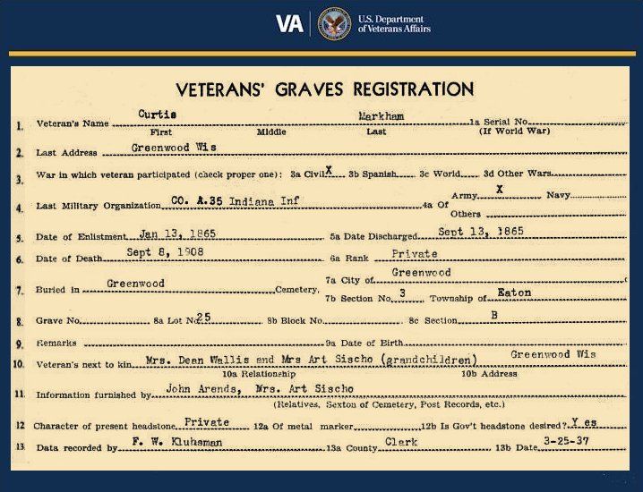 Sources: History: Soldier Burials--Loyal, History: Soldier Burials--Mayville, History: Soldier Burials--Mentor, History: Soldier Burials--Sherman, History: Soldier Burials--Thorp Village (1928); Clark County G.A.R. records: #1 Clark Co., WI GAR, #2 Clark Co., WI GAR, #3 Clark Co., WI GAR,