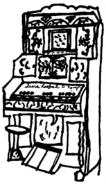 carvings; it had a mirror and on each side was a small compartment with doors.