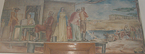 On the North wall of the Neillsville, Clark County Post Office lobby, there is a historical mural done in 1940 under a federal grant by John VanKoert, who, at the time, was an art instructor at the University of Wisconsin.