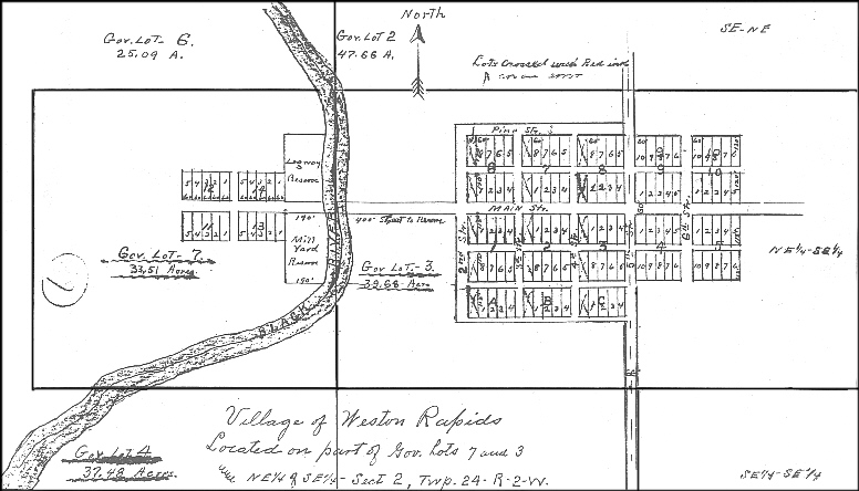 (If anyone has photos of the Weston Rapids village or buildings that were in the village, we would like to copy those. Once copied, the photos are returned.)