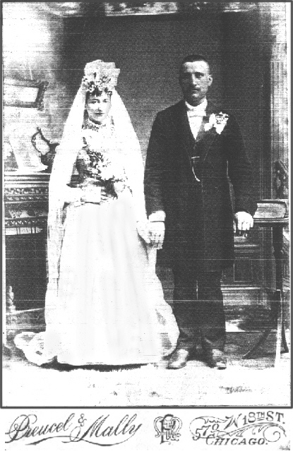 CONSIDERING HIS EDUCATION (MOTHER SCHOOL) HE WAS CHAIRMAN 2 TERMS, ASSESSOR 3 TERMS, AND TOWN CLERK 2 TERMS[,] SCHOOL DISTRICT CLERK 27 YEARS, JUSTICE OF PEACE 1. TERM [,] ALLSO [ALSO] CROP REPERTER [REPORTER] 15 YEARS, HE SCHOOLED HIMSELF BY READING EVERYTHING, WRITES IN FOUR LANGUAGES[.] Mary died of heart trouble, November 20, 1936, and was buried at St. Hedwig's Cemetery. On May 30, 1937, Felix suffered a paralytic stroke and died June 1, 1937, at his home. Funeral arrangements were made by Bogumill Funeral Home in Thorp and he was buried behind his wife at St. Hedwig's Cemetery located near the old church two miles east of Thorp. Pallbearers were George Zukowski, Louis Malecki, Anton Sololesk,i, George Jackowicz, Felix Mroz, Martin Pszesmicki. The family doctor was F. P. Neis of Thorp. HE ALWAYS REMEMBER, ONE TIME HE SOWED RYE CANT DRAG IN DAYTIME, DRAGGED WITH A LANTERN, AND CUT CORN WITH MOONSHINE TILL 9 0 CLOCK P.M. NOW HE IS 64 YEARS OLD. THE OLD DAYS BOTHER HIM, ENDHW [ANYHOW] EVRITHING [EVERYTHING] FOR HIS LAST DAYS, HE ALWAYS SAY GOD BLESS WASHINGTON'S LAND. The Mikolainis family belonged to St. Hedwig's Catholic Church. For a while they left this church to form their own independent church located two miles east of St. Hedwig's Church. The land belonged to the Hoffman family. As they had no pastor, Felix Mikolainis was one who led the "worship service". On May 30, 1897, they officially became known as an Independent Church using the names "All Saints Roman Catholic Church" and later "All Saints Independent Church". Officers of the church were: President--Philip Jasimski, Secretary--John Kurtinsitis, Treasurer--Felix Mikolainis. Many of these people were of Lithuanian heritage. As quoted in the April 26, 1900, edition of The Thorp Courier, a celebration in honor of an ancient personage names Pusias who preached to Lithuanians over 2,000 years ago was held at the home of Felix Mikolainis in the Town of Withee on Sunday last. Speeches, declamations, dancing, singing, and a social dinner was the order and enjoyed by all present. By 1909 many of these people returned to St. Hedwig's parish. Following is a description of the buildings on the farm. The exact date when the log house was built is not known, but it was added on to in 1913. The barn was built in 1908, one of the first in the area and the silo was added in 1915. The old part of the barn located on the east side was torn off in 1926. The stone pig pen was built by a carpenter in 1916 or 1917. The farm's address was Rural Route #4 but later was changed to Route #1, Box 108. The area was known as Neiman's Corner because Mrs. Neiman reported the news to ti@-e Thorp Courier, the local newspaper. Felix and Marianna had nine children, five of whom died in infancy. Those who survived were: Kestutis, Sediminas, Milda, and Birute, and they spoke the Lithuanian and Polish languages. Kase (Kettutis), who was named after a Lithuanian king, was born July 30, 1899. On September 1, 1935, he married Sophie Rogus. Two children, Donald Jerome and Jolanta Dorothy, were born to the couple. Mildred (Milda) was born in 1904. She attended Thorp High School, later moved to Cicero, Illinois, to work for Sears, Roebuck and Co. She lived at 2630 North Fairfield, l323 South 49th Court, and 1326 South 49th Avenue, Cicero, Illinois. Sedmon Stanley (Sediminas) was born October 15, 1906, on his parent's farm near Thorp. He was confirmed by the Rev. A. J. McGavich, Bishop of LaCrosse, Wisconsin, St. Hedwig's Church, May 30, 1923, at the age of 18. He attended high school for one year in Thorp and lived with a family in town. He lived on a the farm until he went to Cicero, Illinois, to become a meat cutter. He went into business with Peter Slozis, Sr., but then sold out to Mr. Grigas and worked for him for $25 per week He also worked at a factory, American Flange Co., for one year. Bertha (Birute) was born on December 27, 1908 on her fathers farm in the Town of Withee, Thorp, Wisconsin. After attending grade schools and Graduating from Thorp High school in 1927. She left Thorp for the city and got a job in 1928. Felix A. Mikolainis (Feliksas Antanas Mikolainis) A short biography by Dr. G. I. Blozis which appeared in a Lithuanian newspaper in Chicago in 1937 and comments by daughter, Bertha Mikolainis. Feliks A. Mikolainis (Feliksas Antanas Mikolainis) was born January 17, 1866, and died June 1, 1937. He was born in the Town of Ciolskiu, Vistyciu Parish, Suvalkijoje County, in Lithuania. As the saying goes, his education began at "mother's University", -- sitting on a stool or kneeling alongside his mother where he learned his players and also to read the prayer book. A desire for learning on his own, enabled him to learn to speak, read, and write quite fluently in Polish and Russian in additional to his native Lithuanian language. ++(In America, he se2f-taught himself to read and write and speak the American language.)++ Coming to America just short of his twentieth birthday in the year 1886, he stopped in Pennsv2vania to work in the coal mines but did not like that type of work; so after a month, he headed for Chicago. He entered St. Francis Polish monastery as a novice. There, he and another Lithuanian novice conversed in the Lithuanian language. The superior required that only the Polish language be spoken. Not willing to forsake his native tongue or nationality, Mikolainis left the monastery. When living in the Chicago area, he was active in various Lithuanian organizations, especially St. George's Society. He became an American citizen but remained a loyal Lithuanian patriot. While making his home at 754 West Seventeenth Street, Chicago, Ill., he became acquainted with a Polish woman, Maria Holec, whom he married, with a pre-nuptial agreement that she would learn the Lithuanian language and children of this union were to be taught the language and children of this union were to be taught the language. As promised, Maria learned the language and the 