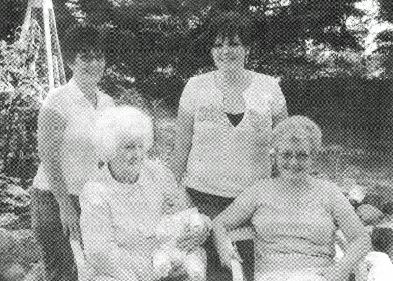 Front row: Great-great-grandmother Margaret (Damski) Woytowicz, Gilman, WI; Baby Ethan Olson, San Antonio, TX; Great-grandmother Sarah (Damski) Olejniczak, Holcombe, WI.  Back row: Grandmother Angela Kortan, San Antonio, TX; Mother Ashley Olson, San Antonio, TX