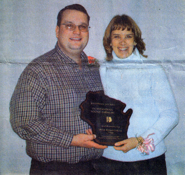 Bill and Bridget Ciolkosz were the Jaycees Outstanding Farmers of 2005. On January 12 and 13 they attended the 2007 Wisconsin State Jaycees Outstanding Farmer Awards weekend in Richland Center. The couple toured area attractions around Richland County and attended a special dinner with the nine other candidates from all over the state of Wisconsin. On Saturday, January 13, Bill and Bridget attended a banquet where they were awarded second runner up for the most outstanding young farmer in the state. The winners live near Polaski, Wisconsin and operate a thousand cows, dairy farm.