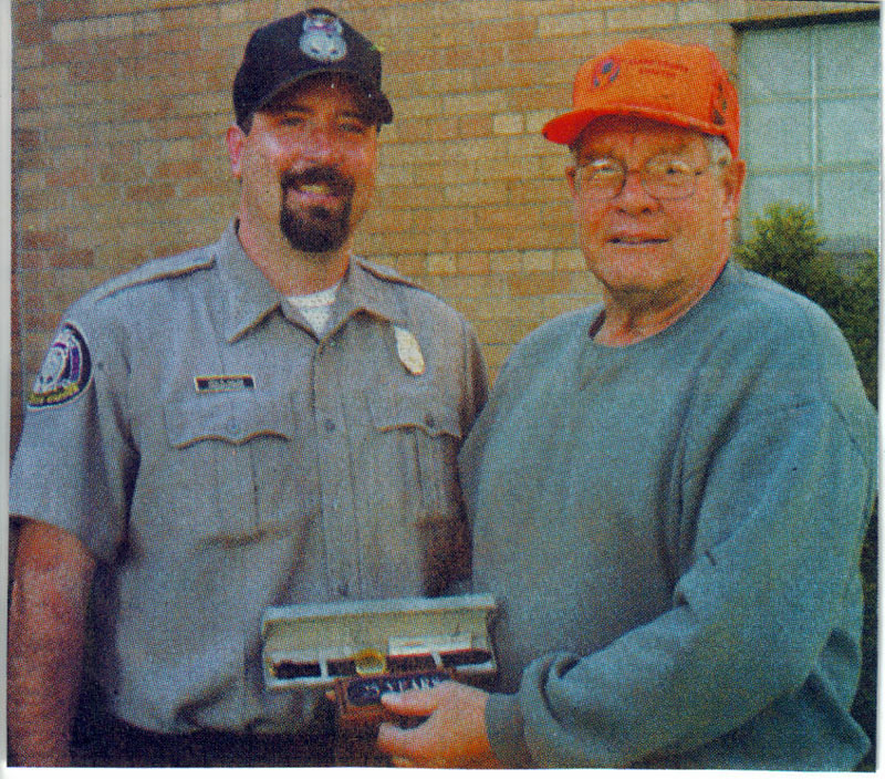 On Monday, October 30, 2006, Clark County’s Conservation Warden Paul Leezer presented Thorp’s Bernie Stuttgen, right, with recognition for his more than 25 years of service as a hunter safety instructor. Stuttgen was first certified as an instructor in 1974 and has been teaching hunter safety ever since.