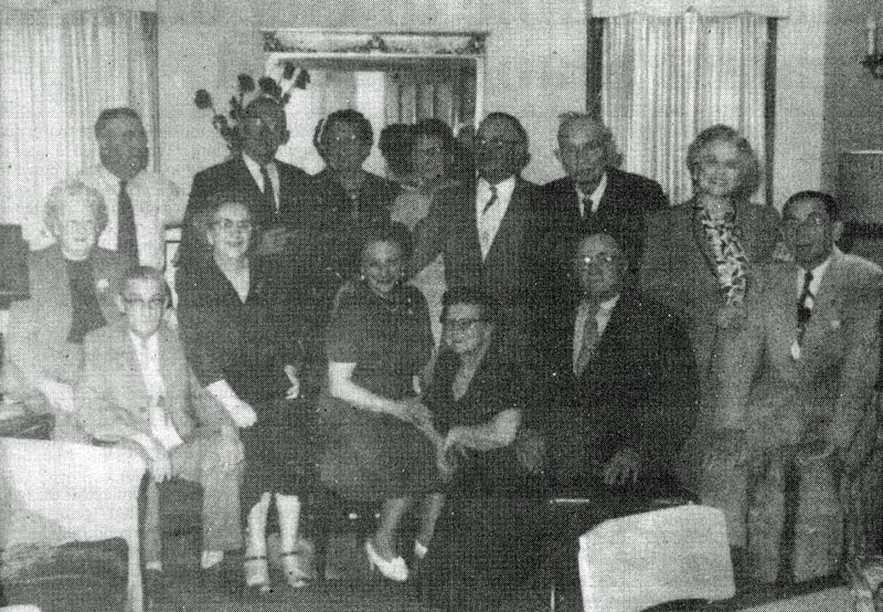 Front row: (L-R) Helen (Mrs. Ollie) Bauer, Doc Neis, Faith (Mrs. Doc) Neis, Hanna K (Mrs. John G.) Bogumill, Jeanette (Mrs. John S. Bogumill, Charles Possley.
