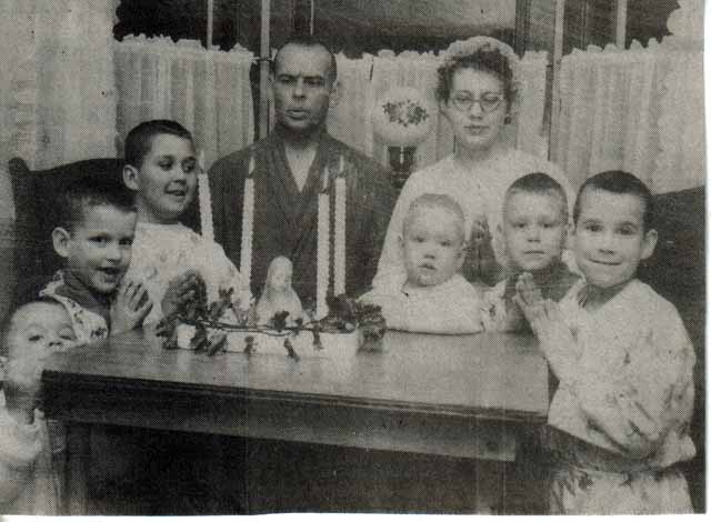 In this week’s Way Back When, we have a picture of a family around a table with lit candles and a figure of a woman.  Each of the six little faces appears eager to look at the camera, hands folded, although the parents seem busy paying attention to other things. Does anyone know who this family is, when it was taken, or what they might be celebrating?  Please let us know, and we will share the information with our readers