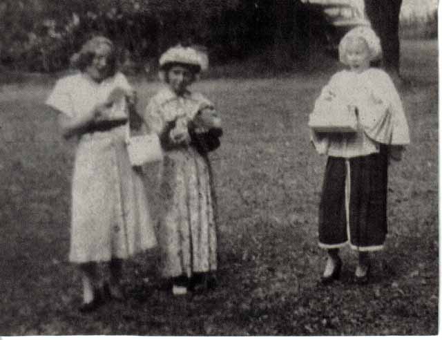 Three girls pretend they are well-to-do women with dresses, hats, and purses. Does anyone know who these young ladies are, or where the picture was taken?  Do you know when the picture took place?  Please let us know and we will pass on any information to our readers.
