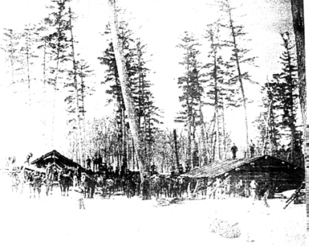 About 1873, Sanford Benedict started working at this logging camp. He was Rollie Benedict's father. Land with pine on it was selling 1872-73 for about $5 an acre. Sanford Benedict wanted to buy some land at this time but his Dad wouldn't let him because pine logs were practically worthless.